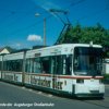 Zuvor verkehrte die blaue Linie auf der Strecke Königsplatz - Rotes Tor, auf der die Linie 3 heute ja auch wieder verkehrt. Die Strecke zwischen Kaiserplatz und Rotes Tor wurde ab 25. Januar 1904 aufgelassen. Die alte Ansichtskarte zeigt einen Triebwagen der ersten Serie am damaligen Kaiserplatz, der heute als Theodor-Heuss-Platz bekannt ist.