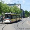 Zuvor verkehrte die blaue Linie auf der Strecke Königsplatz - Rotes Tor, auf der die Linie 3 heute ja auch wieder verkehrt. Die Strecke zwischen Kaiserplatz und Rotes Tor wurde ab 25. Januar 1904 aufgelassen. Die alte Ansichtskarte zeigt einen Triebwagen der ersten Serie am damaligen Kaiserplatz, der heute als Theodor-Heuss-Platz bekannt ist.
